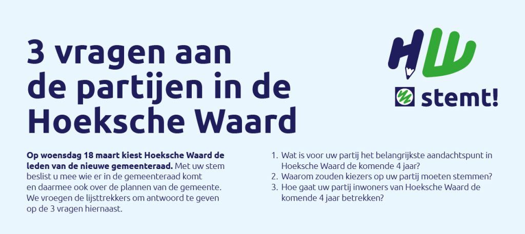 Op woensdag 18 maart kiest Hoeksche Waard de leden van de nieuwe gemeenteraad. We stelden aan de lijsttrekkers van alle partijen deze 3 vragen: