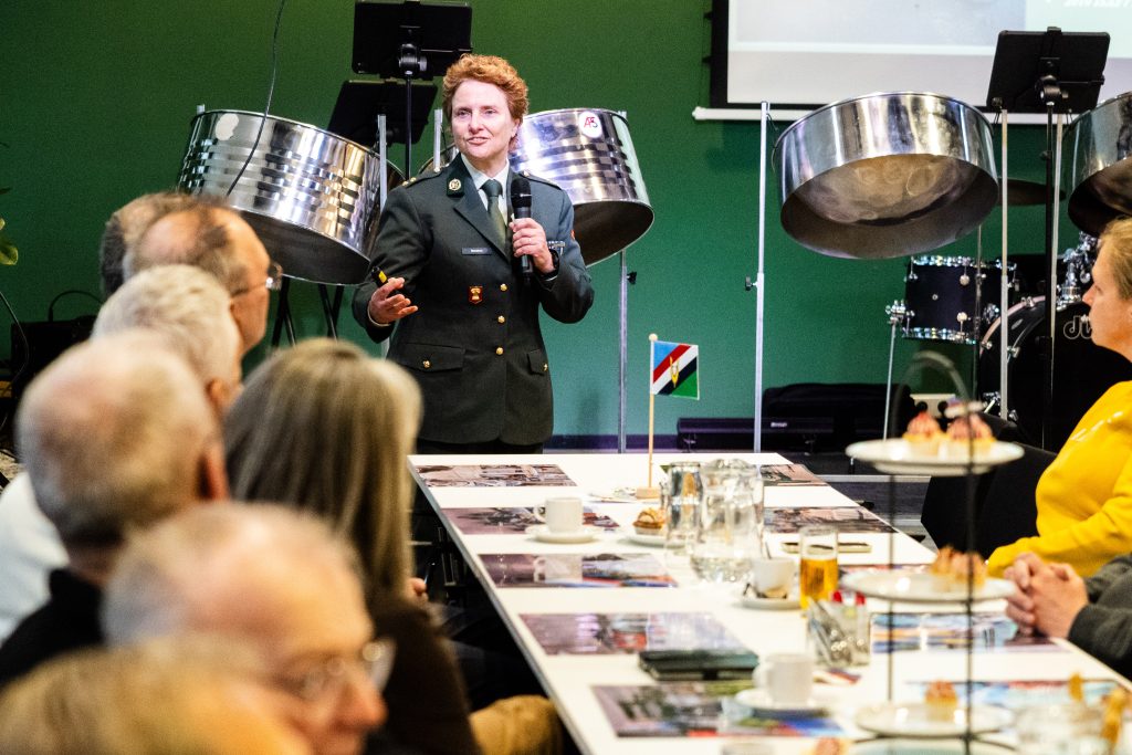 Na het welkomstwoord hield burgemeester Marian Witte een toespraak. Daarin benadrukte zij het belang van de bijeenkomst. Ook sprak zij haar grote waardering uit voor de veteranen. Aansluitend sprak een bestuurslid van de Stichting Hoeksche Waardse Veteranen de aanwezigen toe. Luisa Bonanno gaf deze middag een lezing. Zij begon haar loopbaan in de zorg, maar ontdekte haar ware roeping bij Defensie. In de periode 2002 tot 2020 ging zij 10 keer op uitzending naar buitenlandse missies, waaronder in Irak en Afghanistan. De Steelband van het Korps Mariniers bracht sfeer met hun muziek.