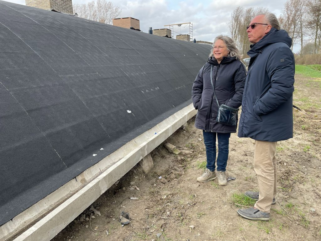 Foto: Miranda den Tuinder (wethouder Cultuur en Erfgoed) en Ad Bogaerds (secretaris van Stichting Aardappelbewaarplaats De Stêêne Hut)