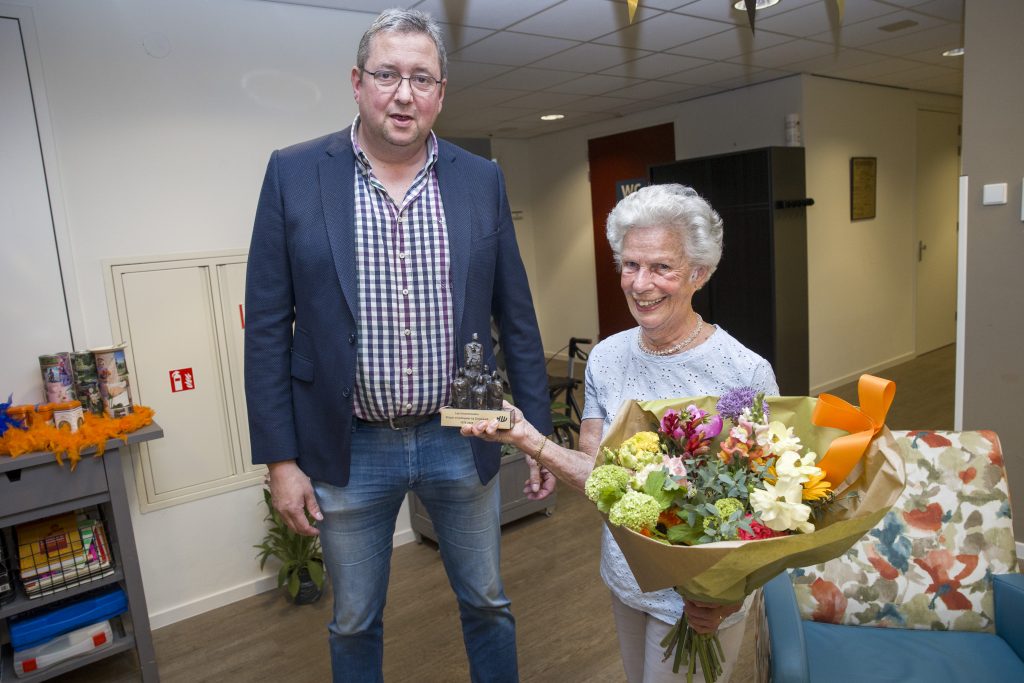 Ter ere van hun 50-jarig jubileum als vrijwilliger waren er vanochtend 2 feestelijke koffiemomenten in Rembrandt. Wethouder René Peters bedankte de 2 vrouwen tijdens de 2 afzonderlijke momenten met het waarderingsgeschenk en een bos bloemen voor wat zij voor de Hoeksche Waard betekenen. “Hun jarenlange betrokkenheid en brede inzet laten zien hoe waardevol vrijwilligers zijn voor organisaties als Zorgwaard. Met hun enthousiasme en toewijding inspireren ze anderen om zich ook in te zetten voor de gemeenschap. Door hun inzet, betrokkenheid, flexibiliteit en positieve invloed op zowel bewoners als medewerkers, is het zeer terecht dat zij dit bronzen beeld als blijk van waardering ontvangen.”